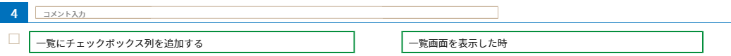 やること「一覧にチェックボックス列を追加する」、条件「一覧画面を表示した時」を用います。