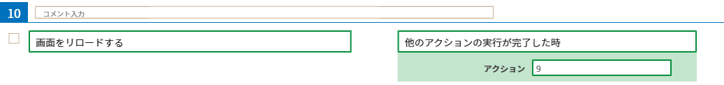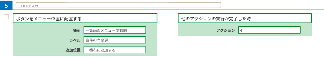 やること「ボタンをメニュー位置に配置する」、条件「他のアクションの実行が完了した時」を用います。
