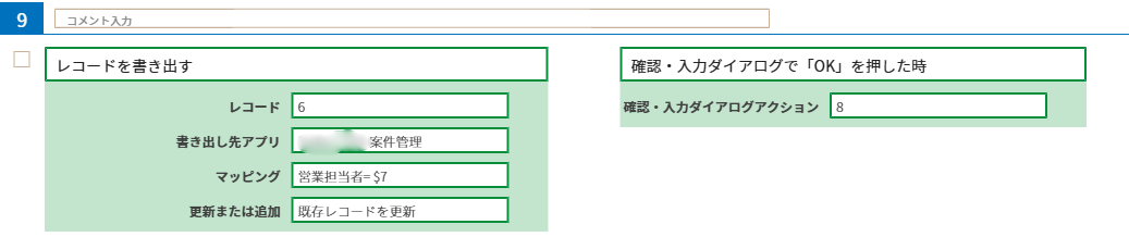 ただし、やること「レコードを書き出す」はパラメーターで元になるレコードを指定するため複数レコードを対象にでき、そのレコードの値を元にレコードを更新することが可能です。