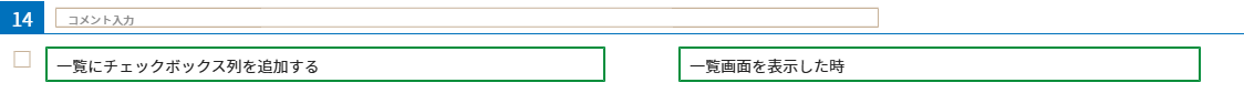 やること「一覧にチェックボックス列を追加する」、条件「一覧画面を表示した時」を用います。