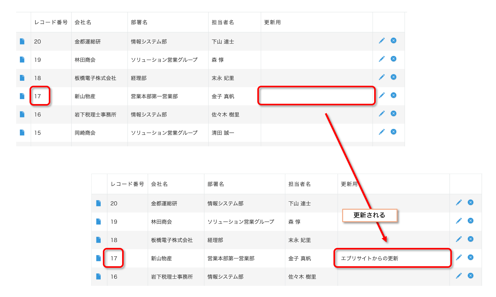 対応するkintoneアプリのレコードが更新されます。