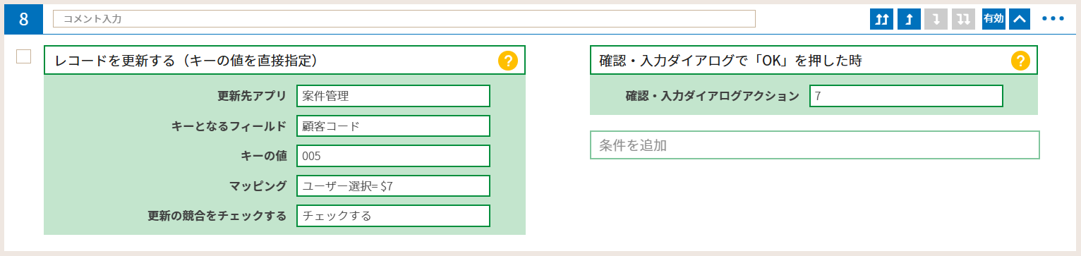 ※「ユーザー選択」の部分は、実際に利用されるアプリのユーザー選択フィールドのフィールドコードを指定してください。