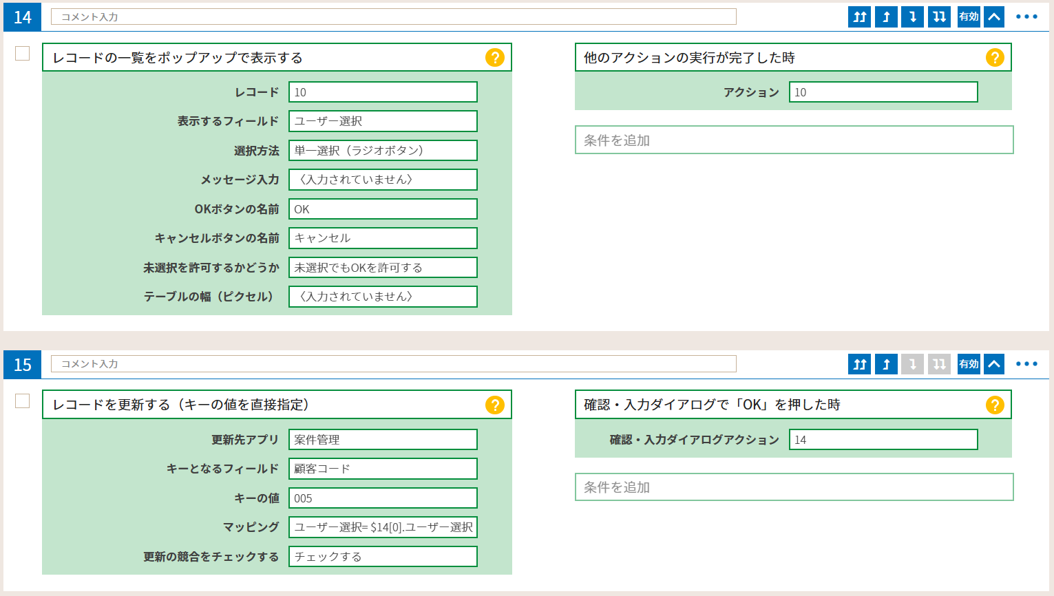 以上が、やること「レコードの一覧をポップアップで表示する」でレコードから取得したユーザー選択フィールドの値を表示し選択する手順です。